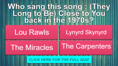 If you can answer "Who sang this song : "(They Long to Be) Close to You" back in the 1970s?" and maybe even "Who sang this song : "Knowing Me, Knowing You" back in the 1970s?" there is a good chance that you're going to beat the average score of 6/10 in this trivia quiz