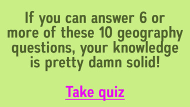 If you can answer "On which continent would you find the South Pole?" and maybe even "In sailing, what is thrown overboard to hold the boat in place?" there is a good chance that you're going to beat the average score of 7/10 in this Geography quiz