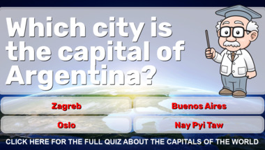 In this fun trivia quiz we're going to ask questions like "Which city is the capital of Spain?" and "Which city is the capital of Argentina?".