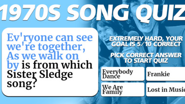 In this fun 1970s songs quiz we're going to ask questions like "Who sang this song : "Copacabana (At the Copa)" back in 1979?" and "Who sang this song : "Don't Go Breaking My Heart"?".