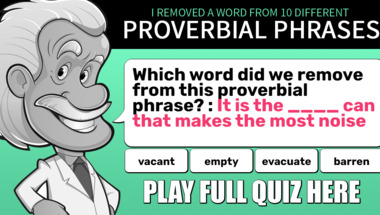 In this fun trivia quiz we're going to ask questions like "Which word did we remove from this proverbial phrase? : "Ask a silly ____ and you wil.." and "Which word did we remove from this proverbial phrase? : "____ minds think alike"".