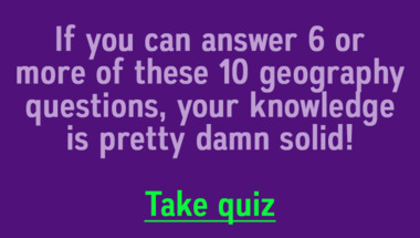 If you can answer "New York is also known as 'the big' what? " and maybe even "What is Argentina's largest city?" there is a good chance that you're going to beat the average score of 6/10 in this Geography quiz