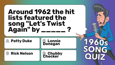 Look forward to questions like "Around 1962 the hit lists featured the song "Let's Twist Again" by _____ ?" and "Around 1960 the hit lists featured the song "My Happiness" by _____ ?"
