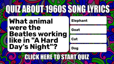 If you can answer "What animal were the Beatles working like in "A Hard Day's Night"?" and maybe even "How many days a week were the Beatles singing about in 1964?" there is a good chance that you're going to beat the average score of 6/10 in this 1960s Song Lyrics quiz