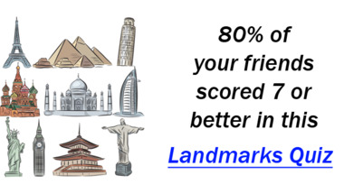 7/10 is the score to beat in this trivia quiz to put yourself over the average quiz taker. But you're probably going to be able to answer questions "Where would you find the landmarks Trafalgar Square, Buckingham Palace and Hyde Park?" and "The Great Wall is a famous landmark in which country?" easy!
