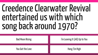 In this fun trivia quiz we're going to ask questions like "Creedence Clearwater Revival entertained us with which song back around 1970?" and "Queen entertained us with which song back around 1979?".